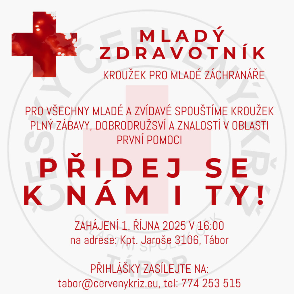 Pro všechny mladé a zvídavé spouštíme kroužek plný zábavy, dobrodružství a znalostí v oblasti první pomoci. Přidej se k nám i ty!